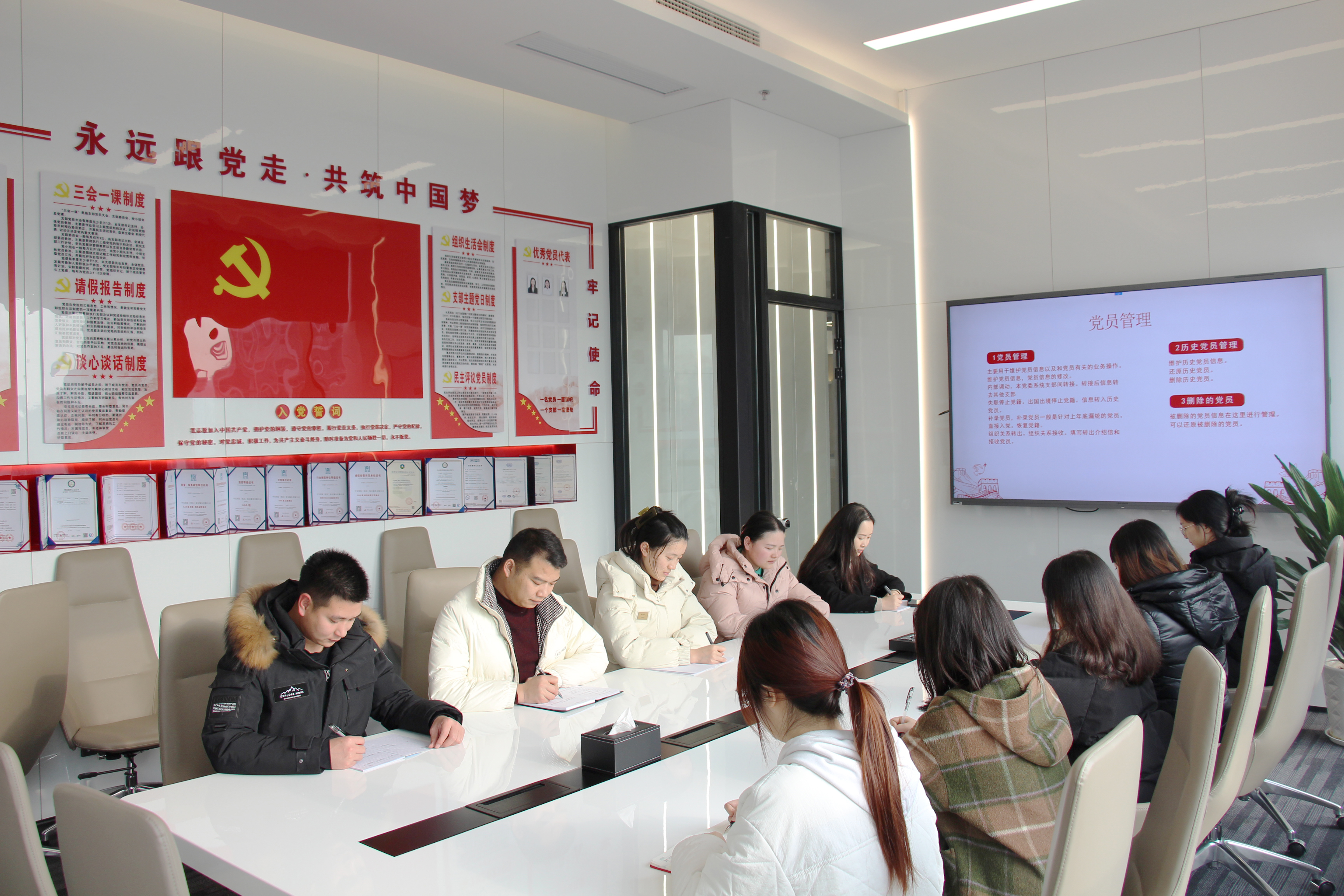 中安國保集團始終推動黨建與公司發展同頻共振,牢固樹立抓黨建促發展的思路,做到黨建工作與經營同謀劃、同部署,以黨建引領發展,以發展促進黨建。高標準打造黨建活動中心,通過開展“三會一課”等組織活動,促進黨員之間的交流和溝通,增強黨組織的凝聚力和向心力。